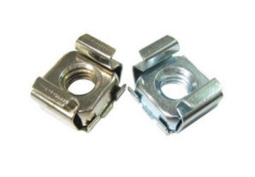 A cage nut is a specialized type of nut designed for use in rack-mounting equipment, particularly in server racks and network cabinets. It is commonly employed in scenarios where ease of installation and secure fastening are essential. The cage nut derives its name from the cage-like structure that surrounds the nut, providing additional stability and flexibility in mounting various components.